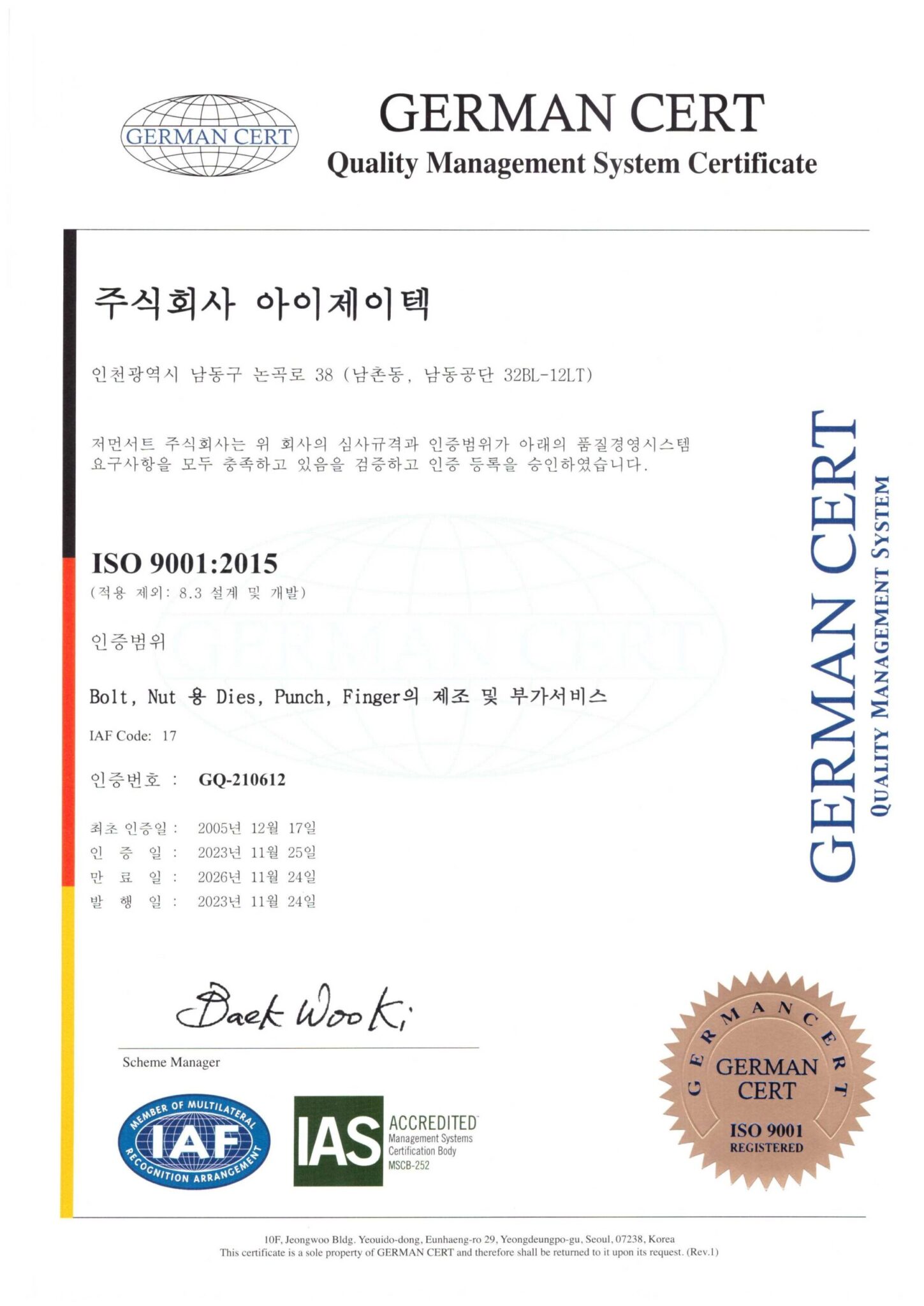 국제 기준에 부합하는 품질경영시스템을 구축하고, 지속적인 품질 개선을 통해 신뢰받는 제조 환경을 유지하고 있습니다.